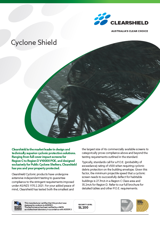 Our ClearShield residential and commercial cyclone window screens are a stand-alone cyclone screen solution that is fully compliant with the new Australian Standard, removing the need for purchasing additional debris impact glass.